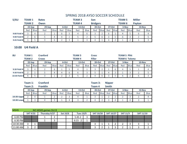 Fall Schedule